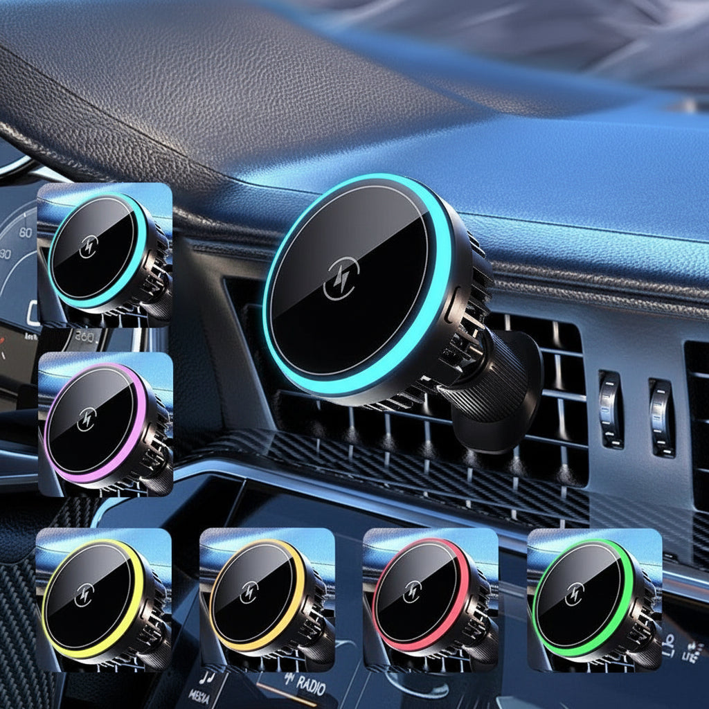 Magnetische Auto-Handyhalterung – 15W Wireless Fast Charger mit LED-Ambientebeleuchtung für Lüftungsgitter